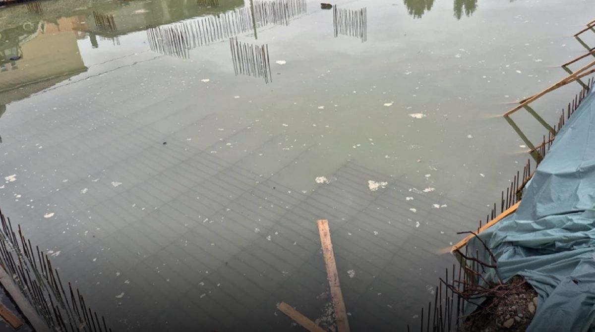 Kako doznajemo s terena, velika iskopana rupa na gradilištu u kratkom je vremenu ispunjena vodom, što je stvorilo iznimno teške i opasne uvjete za nastavak radova. Voda je prodrla iz podzemlja, a dodatne količine oborina samo su ubrzale poplavljivanje gradilišta, koje se doslovno pretvorilo u veliki bazen.