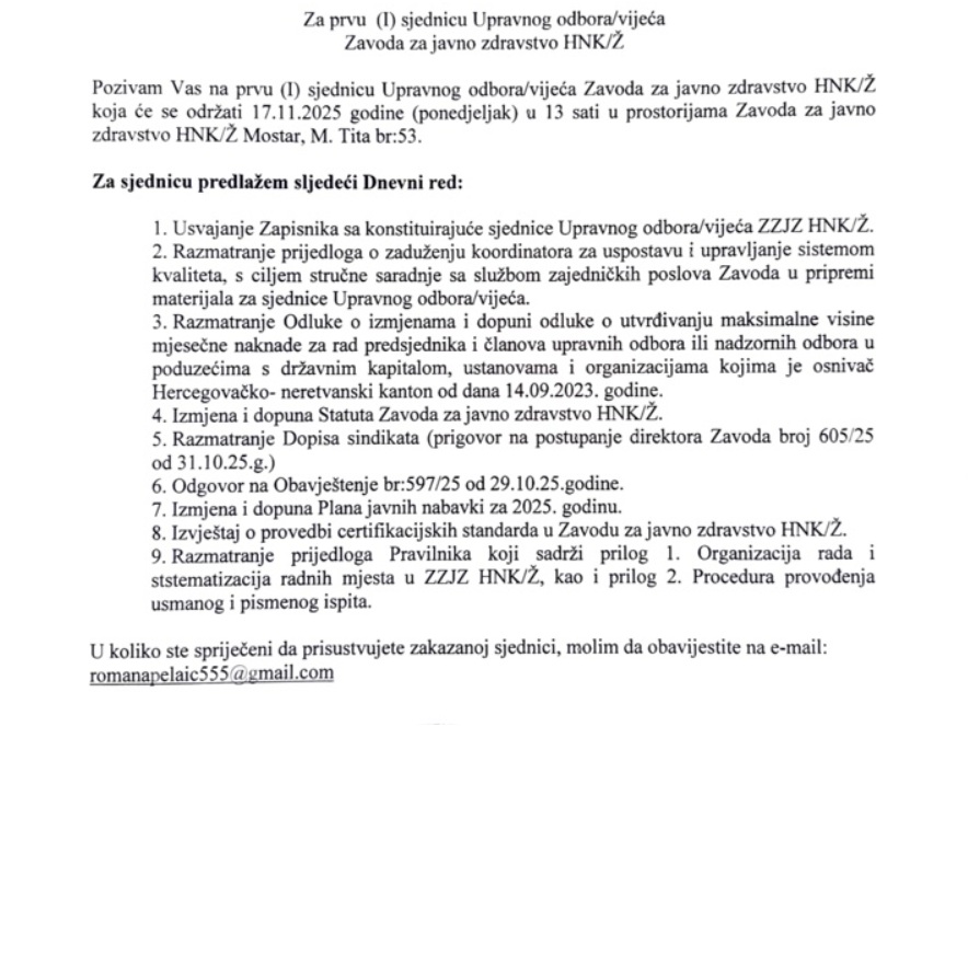 Vlada HNŽ, o čemu je Istina iscrpno pisala uputila je još krajem srpnja Skupštini HNŽ prijedlog izmjene odluke o osnivanju Zavoda, kojom su – mimo Zakona o zdravstvenoj zaštiti FBiH i važećeg Pravilnika o potrebnoj stručnoj spremi – prošireni uvjeti za izbor direktora. Umjesto da se na čelo ove važne zdravstvene institucije može birati isključivo kandidat medicinske struke, predloženo je da direktor može biti i osoba s farmaceutskim ili stomatološkim fakultetom.