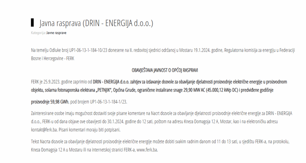 Akciju rasprodaje državnog zemljišta zaokružio je dozvolom i FERK, čime je zatvoren puni krug za Tomasa, koji osim DRIN-ENERGIJE ima i GP Toming. Ono što je možda ovdje zanimljivo primijetiti je da je DRIN-ENERGIJA osnovana u ožujku 2021., a da je samo pola godine iza na Vijeću se našlo zemljište koje sada koristi. Da je slučajno – težak slučaj.