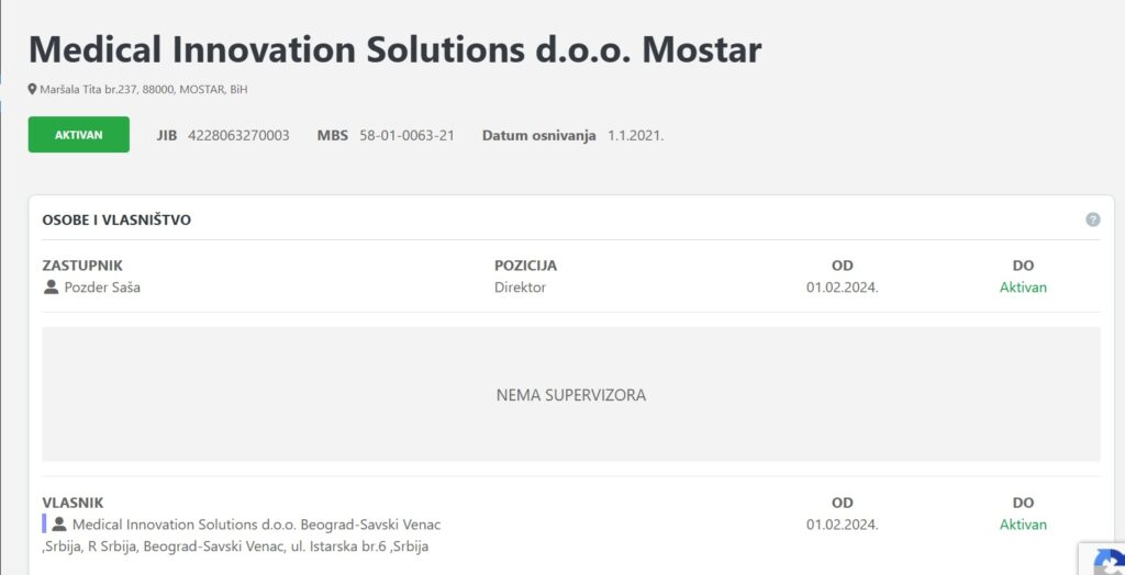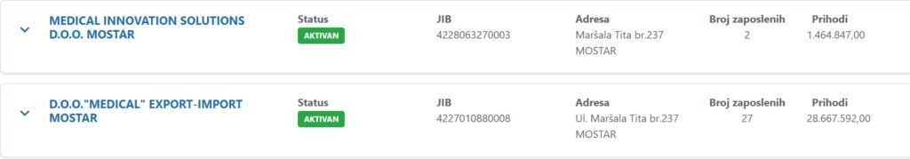 Naime, sam Saša Pozder ima podružnice u Hrvatskoj, BiH, Crnoj Gori, Sjevernoj Makedoniji i Srbiji, a bh. ispostava mu je smještena na istoj adresi gdje i Medical od kojeg Kvesić nabavlja – Titova br. 237: