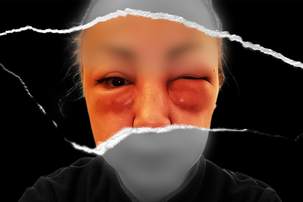 „Nemojte me gledati, preplašit ćete se!“ – vrisnula je 47-godišnja Azra kada se pogledala u ogledalo. Lice joj je bilo otečeno do neprepoznatljivosti, a oči potpuno zatvorene. Prstima je morala razdvojiti kapke kako bi uopće mogla vidjeti.