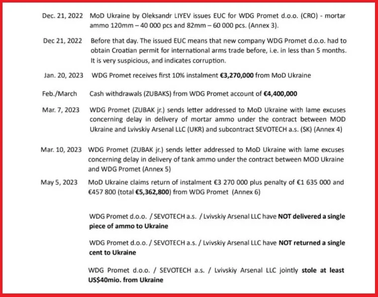 U međuvremenu, novac s računa WDG-a u Češkoj je navodno “nestao”, odnosno uplaćeni avans je, prema Zubakovim riječima, netko ukrao s računa! Činjenica jeste da je upravo preko ovog fonda uplaćen novac za kupovinu “Vitezita”. U svakom slučaju, isporuke granata, ali ni povrata novca Ukrajini nije bilo, kako je i navedeno u istražnim izvještajima nadležnih ukrajinskih službi.