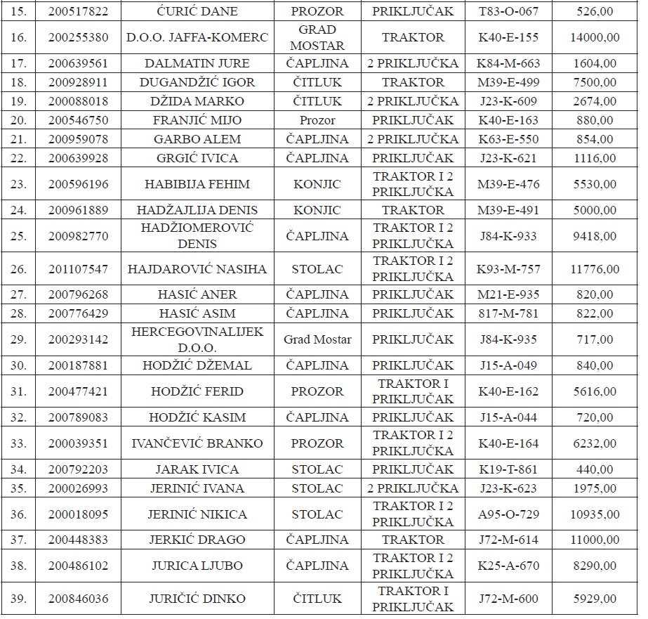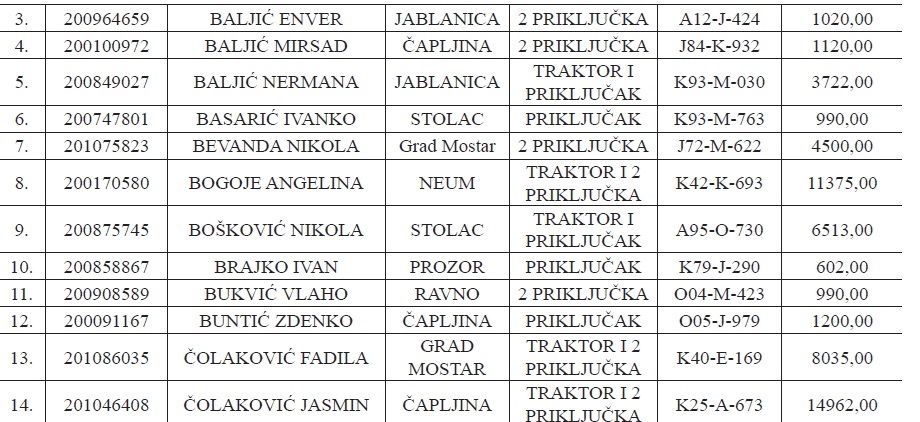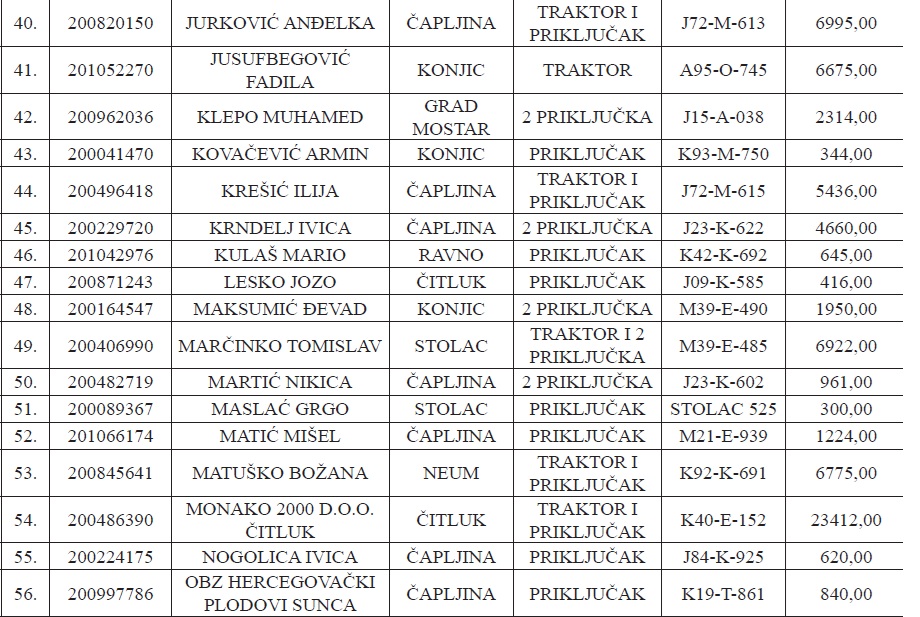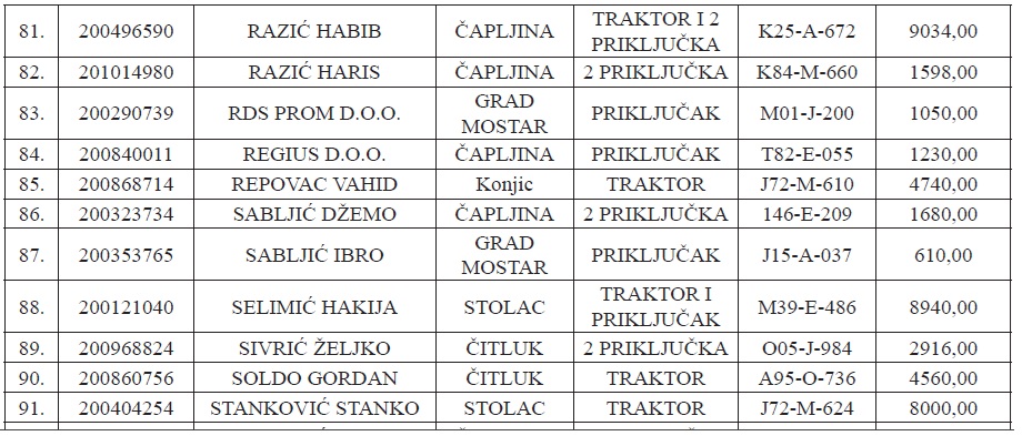 “Daj Čapljini, i ostalima što ostane”, a da je tome tako dovoljno je pogledati odluku o dodjeli subvencija Vlade HNŽ za nabavke traktora i priključaka za traktor.