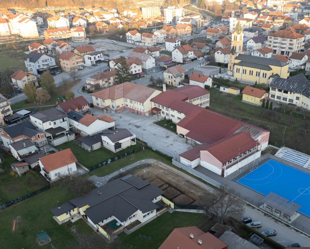 Ta prirodna bliskost, međutim, naglo se prekida polaskom u školu. Već sa šest godina, djeca koja su do jučer dijelila bojice odjednom dijele hodnike i katove. Model „Dvije škole pod jednim krovom“ tu podjelu pretvara u arhitekturu: vrata, zvono, raspored, sve upozorava da postoje „naši“ i „vaši“.