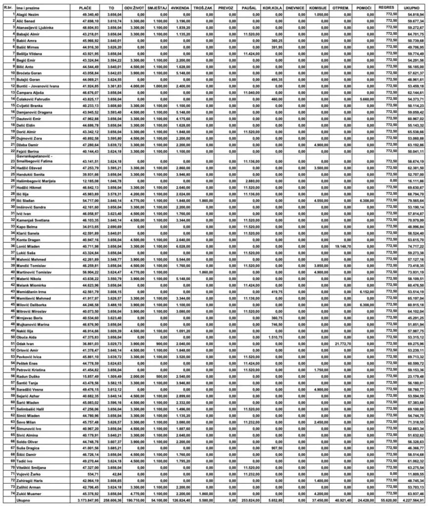 Članovima Doma naroda Parlamenta Federacije BiH, odnosno ukupno za 74 profesionalna izaslanika, u 2025. godini iz federalnog proračuna isplaćeno je 4.227.584 KM. Riječ je o ukupnim godišnjim primanjima, u koja se uz plaće, za pojedine ubrajaju i naknada za odvojeni život, prijevoz, dnevnice, regres i drugo.
