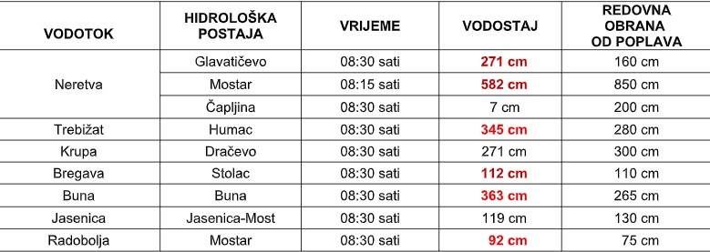 Na području Čapljine vodostaji rijeka su u porastu. Tijekom cijelog dana vršen je obilazak nasipa, a vatrogasci su imali tehničke intervencije koje su se odnosile na ispumpavanje vode iz stambenih objekata.